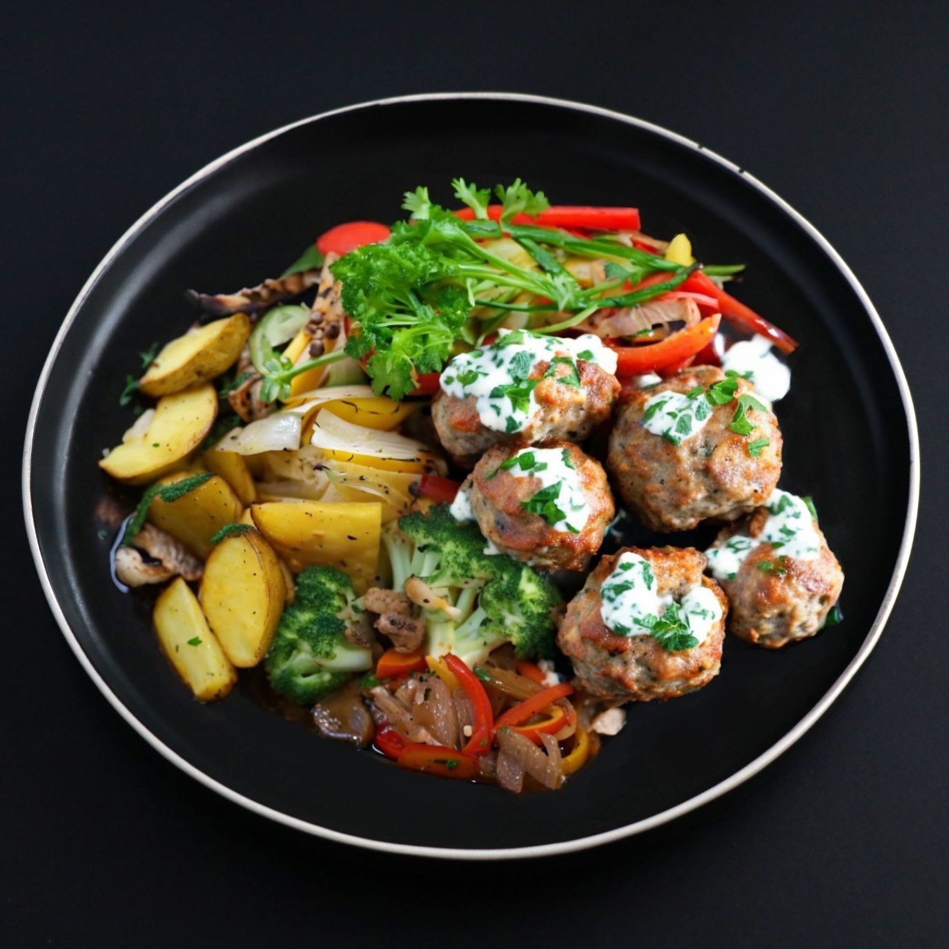 ~Side: ROASTED POTATO~ These lean Turkey Meatballs are filled with the flavors of Greece and fresh herbs, making them a pure mini-flavour-vacation for your tastebuds.