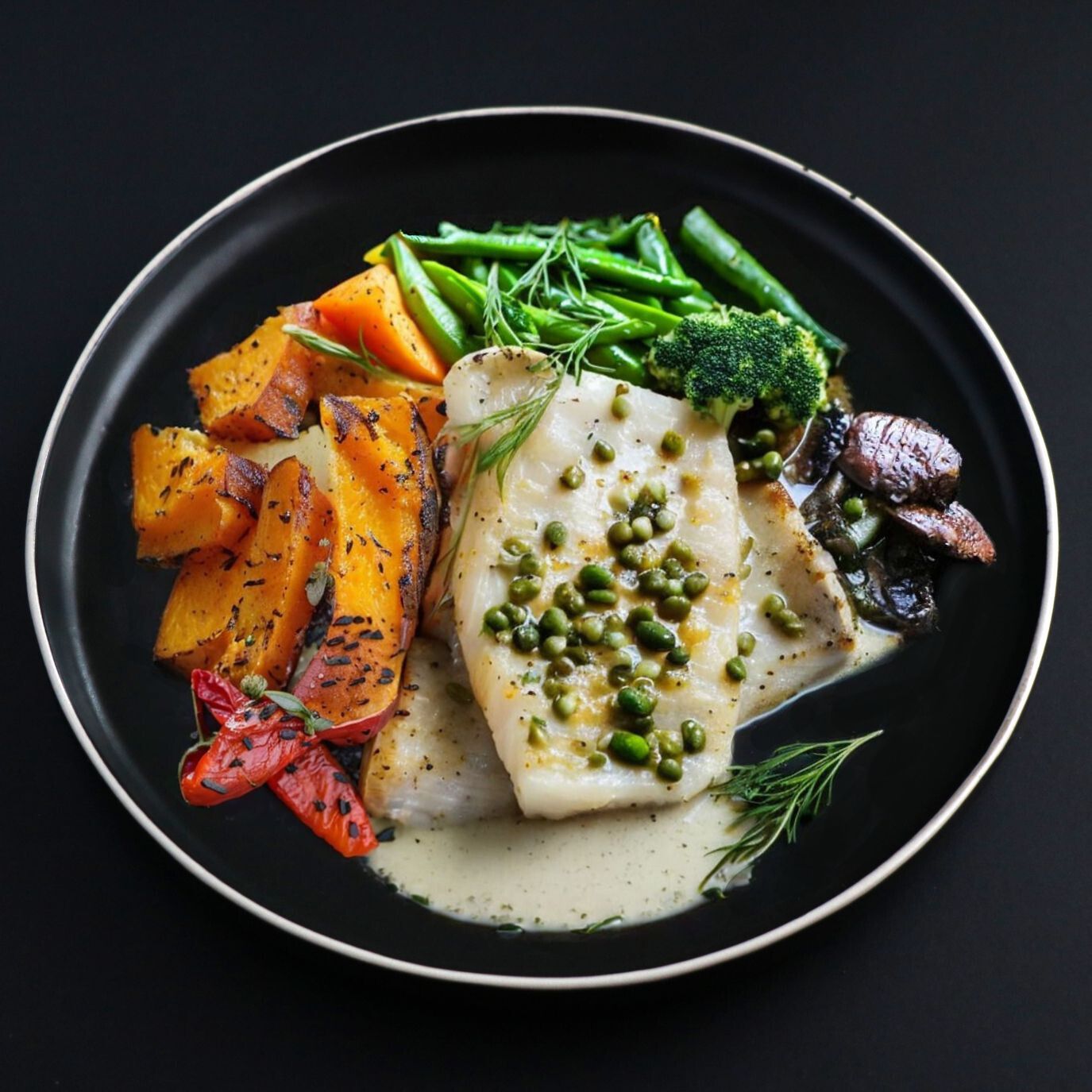 ~Side: ROASTED BUTTERNUT SQUASH~ Enjoy our Cod fillets cooked in a lemony, briny and buttery sauce that will melt in your mouth leaving with a pleasant aftertaste of southern herbs.