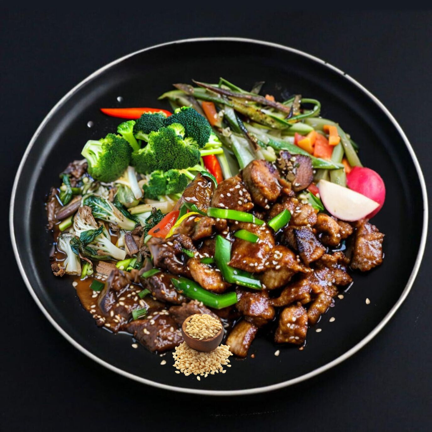 Beef chuck (Halal); Garlic, ginger, soy, chili, monk fruit sugar, sesame