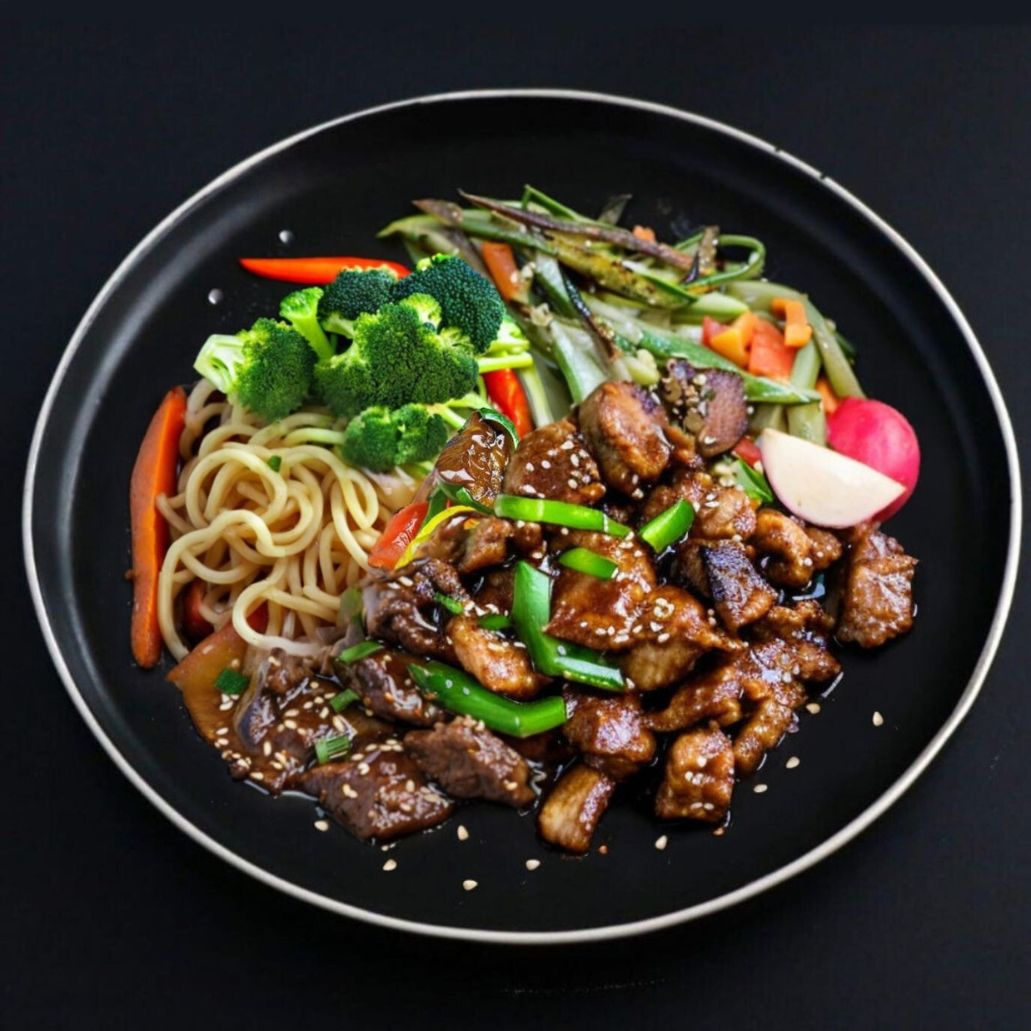 ~Side: SWEET POTATO NOODLES~ Treat yourself to our Mongolian juicy strips of beef caramelized in a bold, savory-sweet sauce with garlic and ginger creating a rich and satisfying depth of flavor.