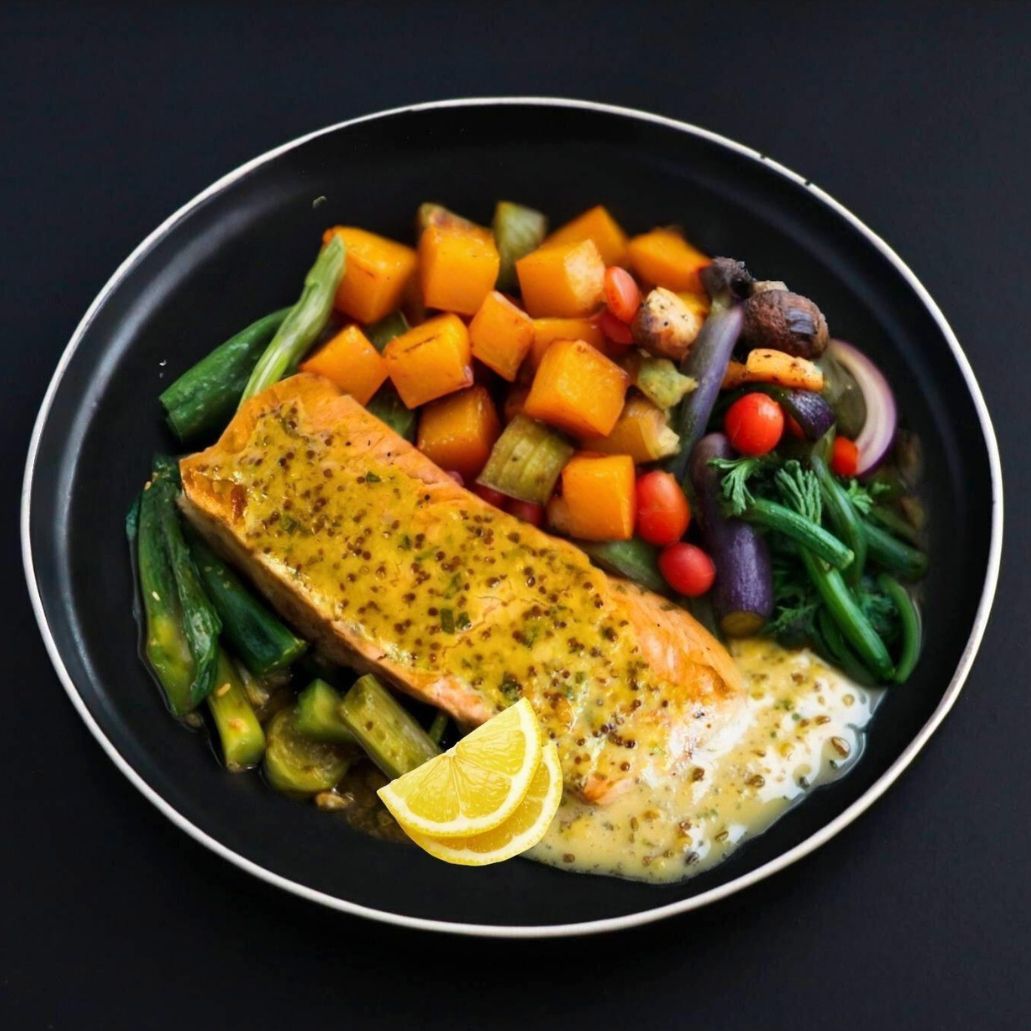 ~Side: ROASTED BUTTERNUT SQUASH~ Oven-roasted Salmon glazed with a zesty Lemon Dijon sauce - bright, tangy, and packed with flavour in every bite. A fresh and feel-good choice to enjoy!